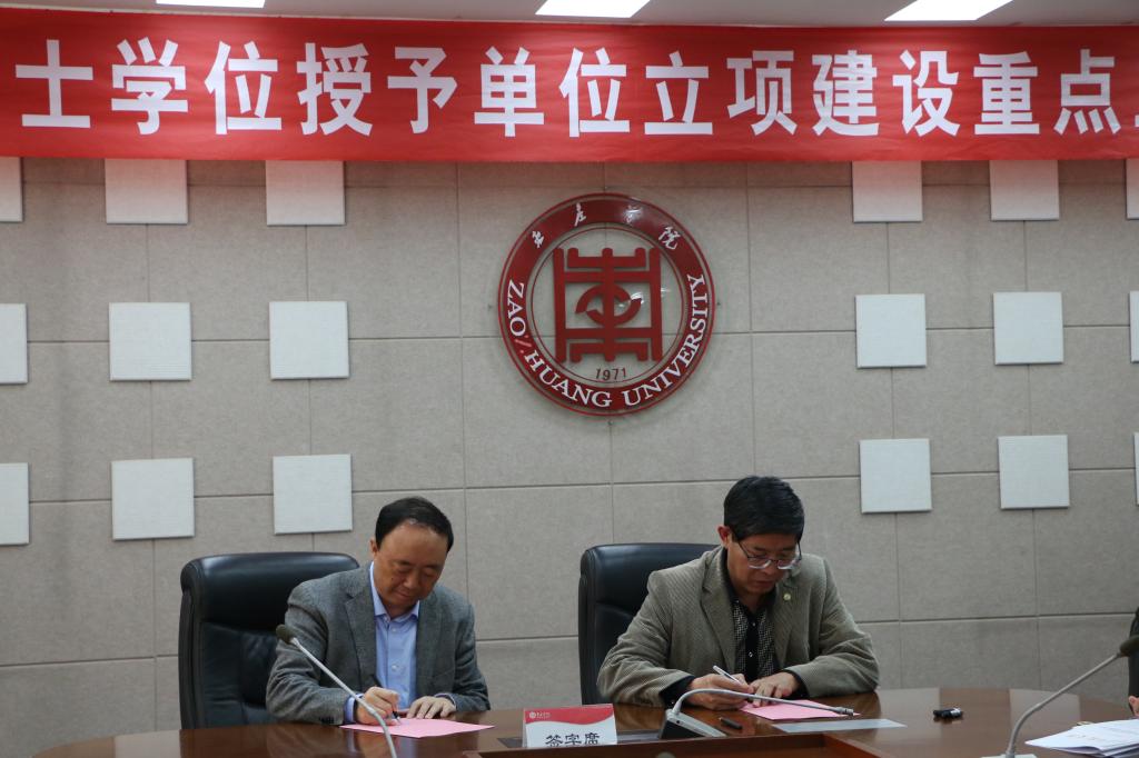 曹胜强为2018年度学科建设工作突出贡献单位、科研创新工作先进单位颁奖,并与“3+3”学科依托学院负责人签订2019年度目标责任书。