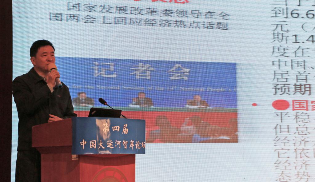 论坛第三阶段是中国大运河智库2019年春季报告会。报告会由王佳宁教授主持。山东省社科联党组副书记、副主席周忠高教授,国家发展与改革委员会《中国经济导报》总编辑焦玉良教授,青岛大学党委书记胡金焱教授,北京物资学院副校长何明珂教授,四川大学公共管理学院院长史云贵教授分别作了题为“充分挖掘和发挥大运河山东段的历史文化资源优势”“关于经济形势几个问题的思考”“普惠金融发展中的‘两难’问题与对策建议”“物流供应与供应链管理”“城市绿色治理能力:概念、要素、体系与运行”的精彩主旨报告。