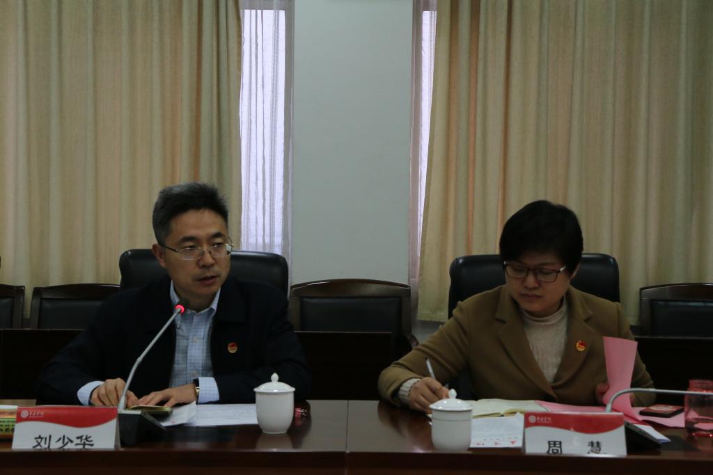 3月20日下午,团省委副书记刘少华一行来best365官网调研共青团工作和学习贯彻习近平总书记在学校思想政治课教师座谈会上重要讲话精神情况,枣庄团市委书记周慧、校长李东、校党委副书记曾宪明陪同调研。