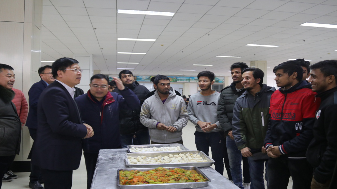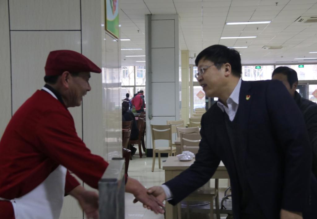 玉犬报捷辞旧岁,金猪献瑞贺新春。2019年2月4日,在这个阖家团圆的除夕日里,副校长李目海在办公室、学生处、保卫处、后勤管理处等负责人的陪同下,代表校党委,向大年三十仍然默默奉献、坚守在工作岗位的80余名学校教职工和60余名外国留学师生致以节日的问候和新春祝福,并与他们欢聚一堂,同吃年夜饭,携手迎新春。