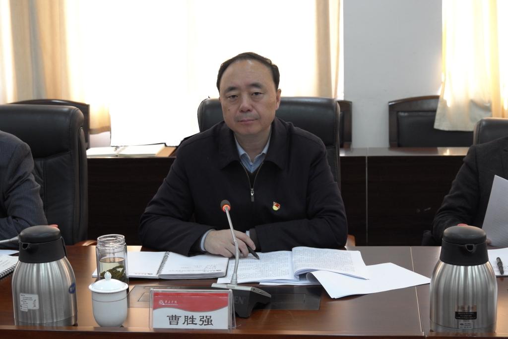 1月16日下午,学校在综合楼三楼会议室召开2018年度党总支书记抓基层党建工作和落实全面从严治党责任述职评议会议。校党委委员、党委职能部门负责人、全体党总支书记、市级以上“两代表一委员”、部分党支部书记代表、党员代表等参加会议。党委书记曹胜强主持会议并讲话。
