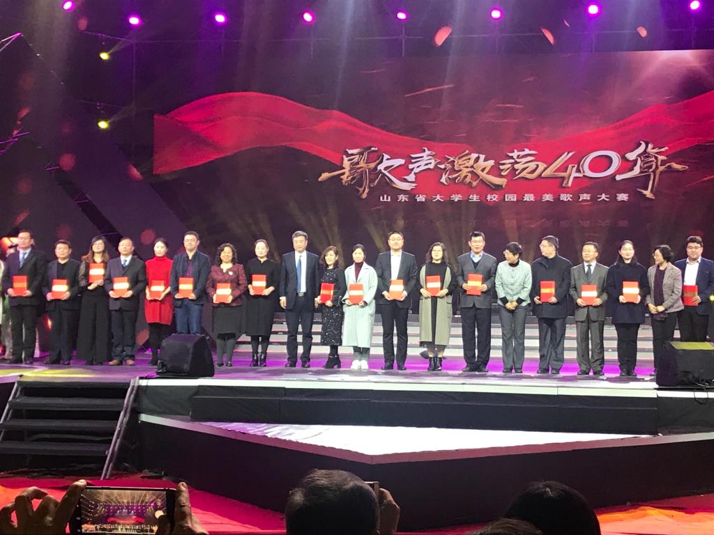 “歌声激荡四十年”,best365体育官网平台谱华篇。11月25日晚,“歌声激荡四十年”山东省大学生校园最美歌声大赛总决赛暨颁奖盛典在山东大学体育馆举行,山东省人大常委会副主任王随莲出席典礼并为获奖选手颁奖,校党委副书记曾宪明及宣传部、音乐与舞蹈学院师生100多人参加盛典。best365官网获得3个一等奖、1个二等奖、1个优秀原创作品奖和优秀组织单位奖6项大奖,成为全省高校获奖数量最多、参与颁奖盛典演出节目最多的高校。