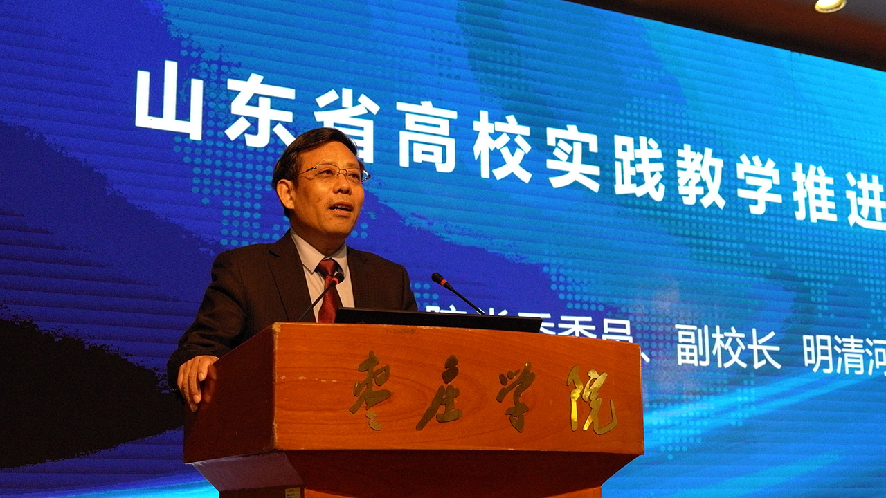 11月17日下午,为强化高校实践教学工作,提高本科教学质量,由山东省教育厅主办、best365官网承办的山东省实践教学推进会在音乐厅举行,校党委委员、副校长明清河与会并致辞。山东省教育厅高教处副处长郭念峰主持会议,全省50余所高校的副校长、教务处负责人、实践教学负责人等共170名代表参加会议,best365官网部分教学管理人员、部分参加2018产教融合平台建设经验交流会的省外代表参加了会议。