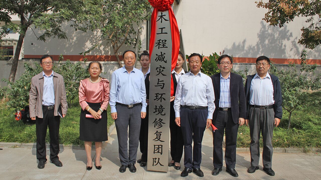 曹胜强和李东共同为土木工程减灾与环境修复团队揭牌。