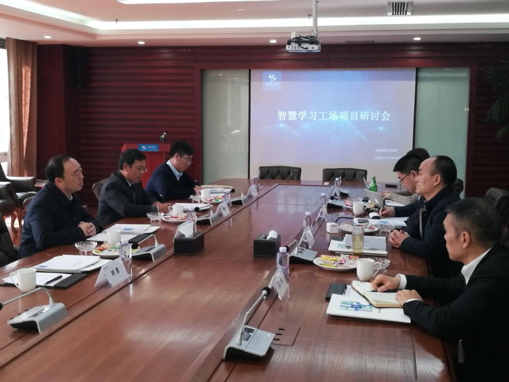 2月8日上午,曹胜强书记、明清河副校长应邀到华晟经世信息技术有限公司北京总部参加智慧学习工场项目研讨会,北京华晟经世信息技术有限公司董事长张勇、副总裁张宇、运营事业部总经理梁舒、运营事业部总监王辉参加了研讨。