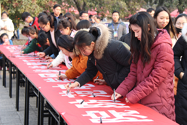 仪式结束后,与会领导与师生代表依次在倡议横幅上签名承诺,并观看了市中公安分局反电信网络诈骗中心制作的宣传展板。