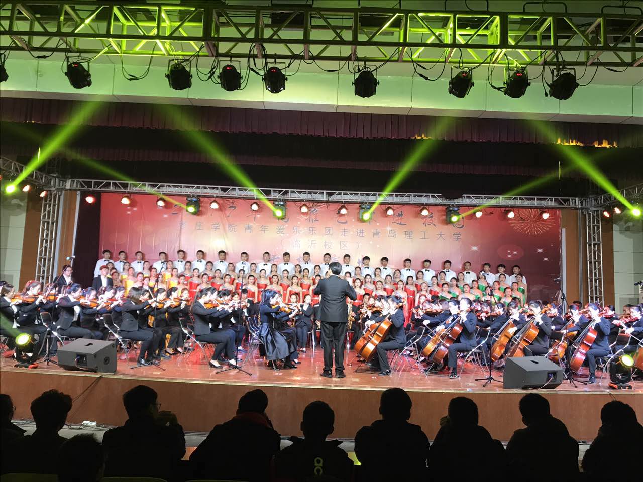 为贯彻党的十九大和习近平总书记系列重要讲话精神,落实《中共中央关于繁荣社会主义文艺的意见》和《国务院办公厅关于全面加强和改进学校美育工作的意见》,实现立德树人根本任务,11月29日晚上,在校党委委员、副校长李进京的带领下,best365官网青年爱乐乐团在青岛理工大学临沂校区举行了“高雅艺术进校园”大型演出活动。李进京、青岛理工大学临沂校区副校长孙张飞和相关部门负责同志以及广大师生共同观看了演出。