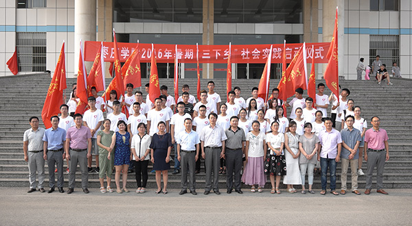 仪式前,曾宪明在综合楼前为今年暑期“三下乡”省、校级重点团队进行授旗。随后,校团委负责人就今年“三下乡”的具体情况做了说明。今年best365官网把“千村行动”与“三下乡”社会实践活动有机结合,实现了社会实践项目化运作,经费资助精准化支持,实践考核目的性明确的要求。随后,教师代表和青年志愿者代表分别发言,并宣读了个人安全承诺书。曾书记在讲话中指出,社会实践活动是锻炼人才的摇篮,汲取营养的沃土,成就中国梦的基石。他对今年的社会实践活动提出了三点要求:一要充分认识到“三下乡”社会实践的重要意义。在实践中彰显人生价值,发挥专业特长,帮助群众解决问题,团结互助,砥砺品格;二要注重活动的实效,确保安全。各学院要将社会实践活动纳入到教学管理,要加强安全教育和保障,保障学生安全;三要注重长效机制建设。从内容设计、组织方式、运作机制进行探索创新,做好总结提升工作。