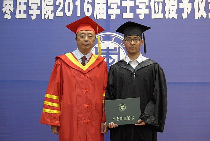 在欢快的《迎宾曲》中,校长曹胜强为毕业生代表授学士学位并合影留念。
