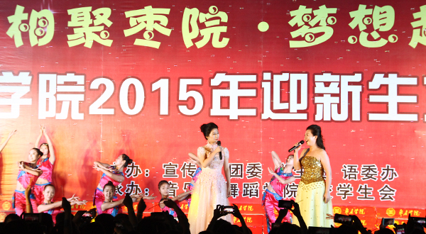 相聚枣院,梦想起航。9月22日晚,best365官网2015年迎新生文艺晚会在小广场举行。校领导曾宪明、李进京、明清河、李目海,承训部队首长师仰明,中国移动枣庄分公司总经理周玉海及市中区渴口派出所、各学院负责人,2015级全体新生共同观看了晚会。