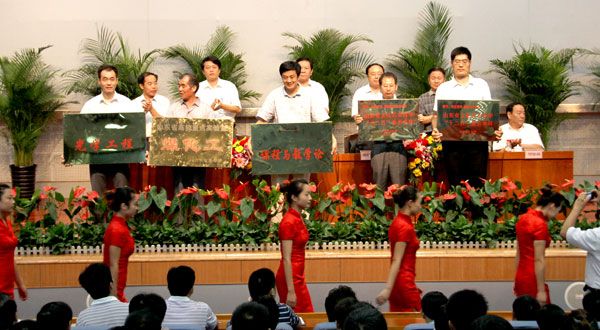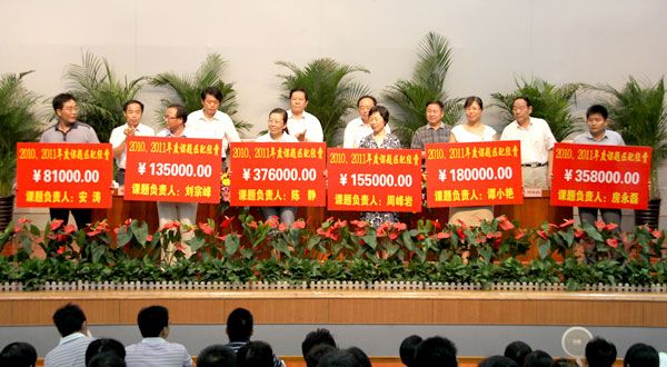 会上,副校长曾宪明宣读了关于表彰优秀科研组织单位、科研工作先进单位和服务地方先进个人的决定;纪委书记高庆喜宣读了科研奖励名单;校领导为省级重点学科、省级实验室授牌;为科研工作先进单位、优秀科研组织单位和优秀科研成果代表颁发奖牌和奖金;化学化工与材料科学学院和数学与统计学院代表科研工作先进单位作了典型发言;校长胡小林作重要讲话。
