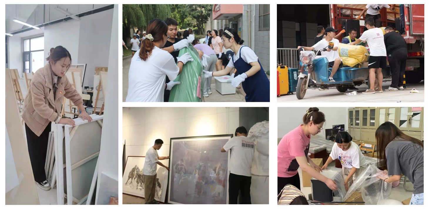 在校区搬迁过程中,针对学院物品多、艺术品重、搬迁任务艰巨的工作实际,学院切实发挥基层党组织的战斗堡垒作用和党员先锋模范作用,号召党员师生冲锋在前,通过实际行动为学院搬迁多做贡献。学生党支部成立了党员服务先锋队,设置“党员先锋岗”,全体党员和入党积极分子分工负责,全程协助老师完成搬迁前物品整理和打包工作,为顺利搬迁奠定坚实基础。在搬迁工作中,党员师生充分发挥吃苦在前、服务同学的优良传统,有组织地协助同学搬运行李,主动为同学提供点对点服务,大大提高了搬迁效率,得到师生一致认可。搬迁后期,党员服务先锋队继续协助老师做好物品的拆包和整理工作,目前所有已搬迁物品均整理到位,圆满实现平稳有序、平安搬迁的预期目标。