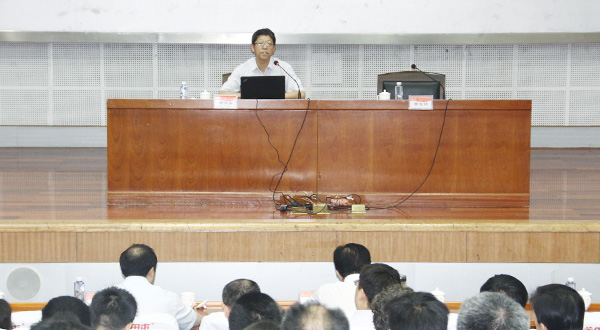 2014-06-035月28日,成都大学周明圣教授学术报告《阵痛与突围——转型期应用技术大学的变革之路与教师成长》在综合楼学术报告厅举行。报告会由曾宪明副校长主持,校领导胡小林、曹胜强、高庆喜、颜世昌出席了报告会。 周明圣教...