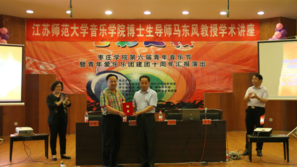 2016-06-036月1日下午,best365官网特聘教师、江苏师范大学音乐学院博士生导师马东风教授来best365官网讲学。副校长李进京出席了讲座并为马东风教授颁发了特聘教授证书。 马东风教授做了题为“2016年音乐考研形势与分析报告”的专题讲座。他系...