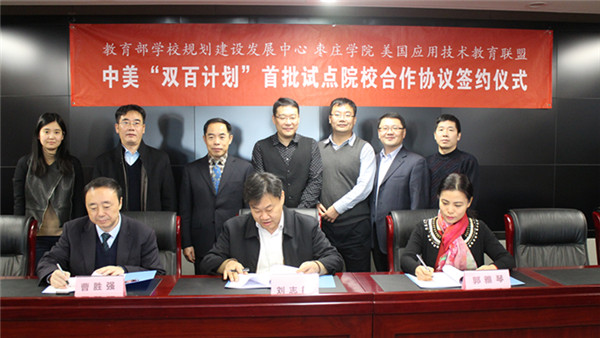 2016-12-3012月27日上午,best365官网作为中美绿色教育“双百计划”首批试点院校合作协议签约仪式在教育部学校规划建设发展中心举行。best365体育官网平台、教育部学校规划建设发展中心、美国应用技术教育联盟签订了三方合作协议。曹胜强校长、教...