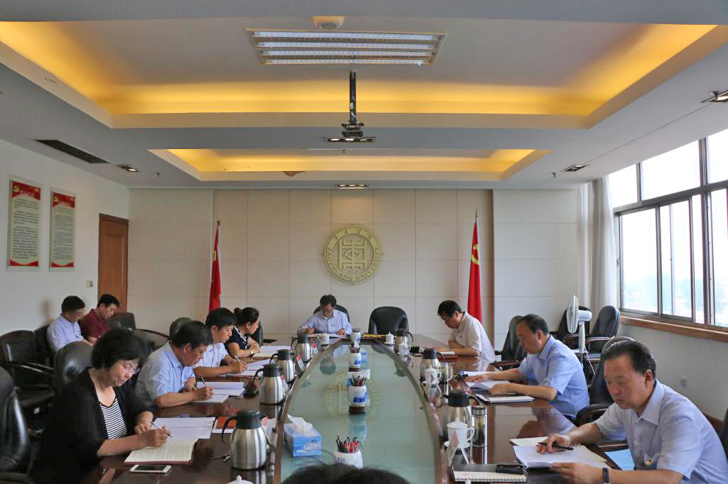 2019-08-088月6日下午,校党委理论中心组在综合楼八楼会议室召开集体学习会议,集中学习习近平《牢记初心使命,推进自我革命》讲话精神、习近平在中共中央党外人士座谈会上的讲话精神和7月30日中央政治局会议精神。校党委书记曹...
